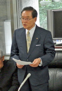 元名寄市長・桜庭康喜さんは「毎日書き、問う報道を見て胸が痛む思いだ。地方行政に携わってきたものとして自分たちの思いを明らかにすることができないか、そんな熟知した思いで日々を過ごしてきた。そういう時に先輩諸氏からいろいろな提言があった。政治、行政を経験したものとしてはっきりとものをいうべきだ。態度を明らかにするべきだ」と述べた後、「安保保障関連法案の慎重審議を求める緊急声明」を発表した。