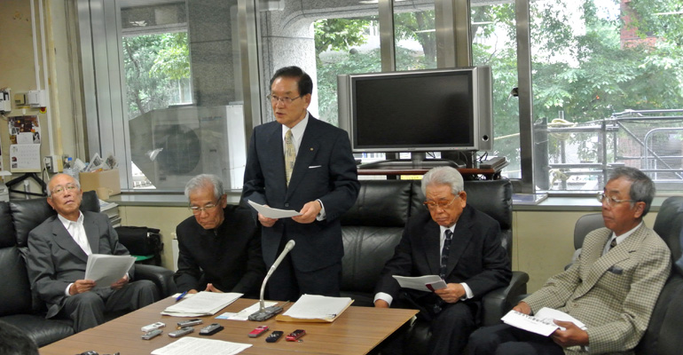 9月9日、道庁記者会見室で「北海道内市長OB有志の会」から、前・元市長5人が参加し、安保保障関連法案の慎重審議を求める緊急声明の記者会見を行った。