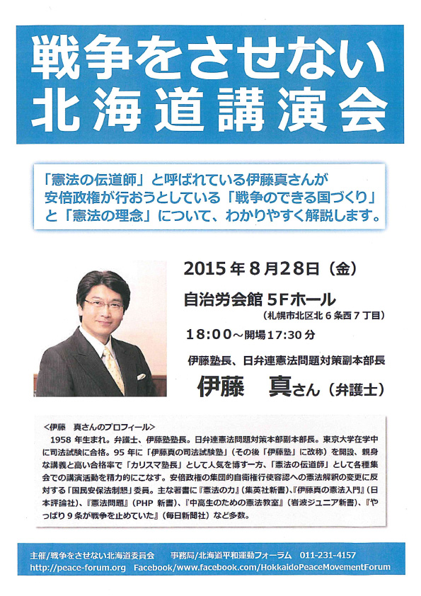 「戦争をさせない北海道講演会」は8月28日(金)