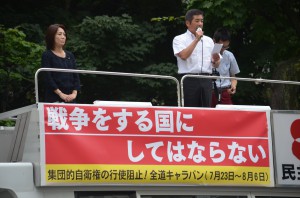 民主党北海道「集団的自衛権の行使阻止!全道キャラバン」が到着集会!