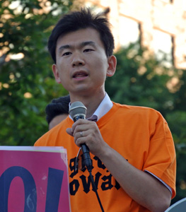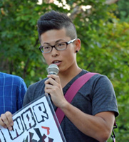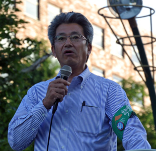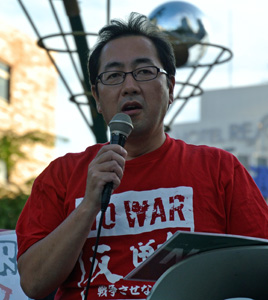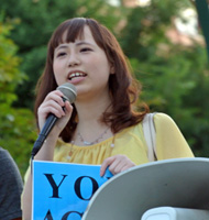 日弁連憲法問題対策委員・明日の自由を守る若手弁護士の会共同代表・神保弁護士は「日本全国の弁護士会が安保法案に抗議し反対の声を上げている。私の背中には守るべき若者がいる。主権者は私たち国民です。私たちは権力者に憲法を守らせ、辞めさせることができる。安保法案廃止にむけともに頑張ろう」と呼びかけた。