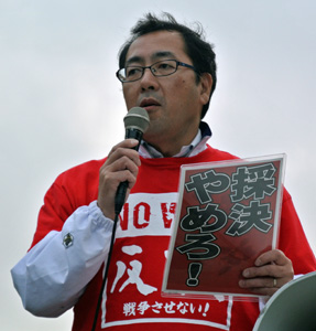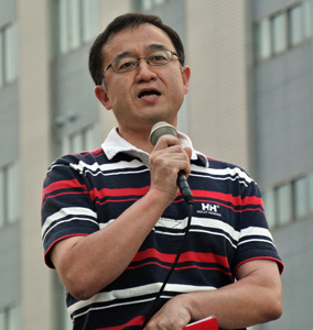 北海道労働組合総連合・黒沢議長は「いま、団体や宗教、思想信条を超えて、多くの人が戦争法案を止めるために団結している。若者が声を上げ出している。北海道から安倍首相退陣の声を永田町に送ろう」と呼びかけた。