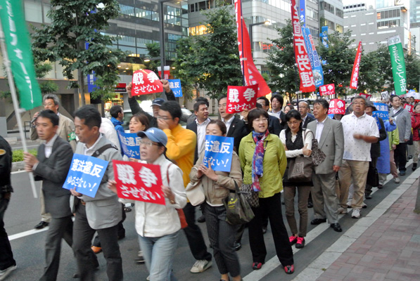デモパレードでは、戦争法案強行採決に怒りをあらわにした市民がデモ中に沿道から次々と参加し「戦争法案 反対」のシュプレヒコールを行いました。最終的には予想を大きく上回る1200人以上の参加で終了。引き続きさらなる総がかり行動を展開する。