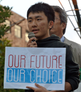 またデモを企画した高塚さんは「いまこそ私たちが一致団結して戦争法案を廃案にしなければならない。いま日本はおかしな方向に進んでいる。みんなで声をあげていきますしょう」と連帯を呼びかけた。