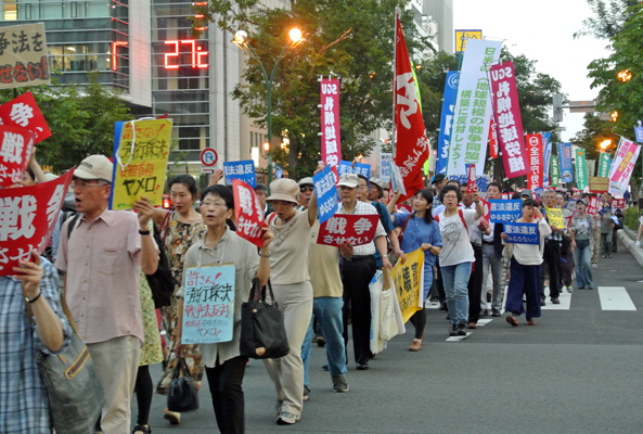 戦争をさせない北海道委員会は7月29日、大通公園西3丁目広場で「総がかり行動」を行い、約500人が参加した。