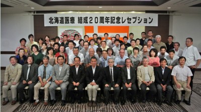 18時から開かれた北海道医療結成20周年記念レセプションは、京王プラザホテル札幌で開かれ。木村元全国医療議長や北村北海道医療元議長をはじめ北海道医療の設立から発展を支えた歴代の議長、事務局や連合北海道や自治労道本部、北海道医療加盟団体の組合員64人が参加し、旧友を温めた。