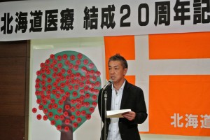 北海道医療は、1993年10月に民間病院と自治体病院など医療等関連労働者が結集し労働条件の改善、情報交換や交流をめざし設立してから20年を迎える。これを記念する20周年レセプションを前にナースアクション全道総決起集会を開いた。